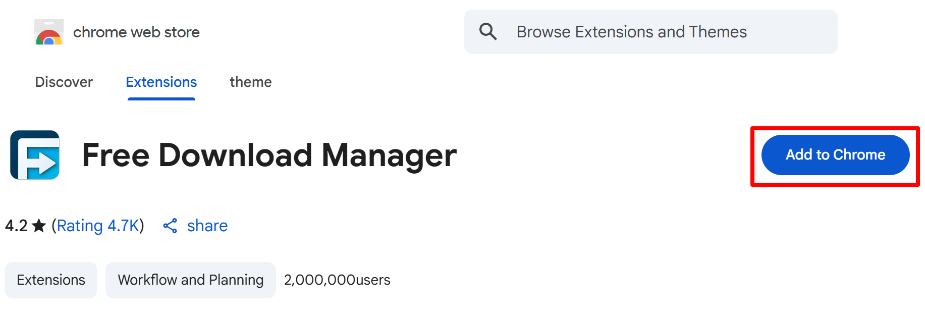 3. 인터넷 창이 뜨면 확장 프로그램 설치하면 해당 브라우저로 다운받을 때 FDM이 실행되어 빠른 속도로 다운로드 가능합니다.