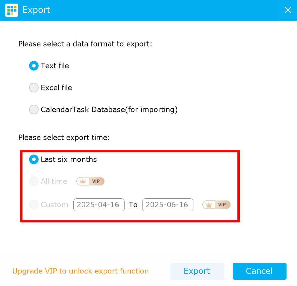 “최근 6개월 이내 일정만 백업 가능합니다. 전체 백업은 유료 결제 후 가능합니다.”