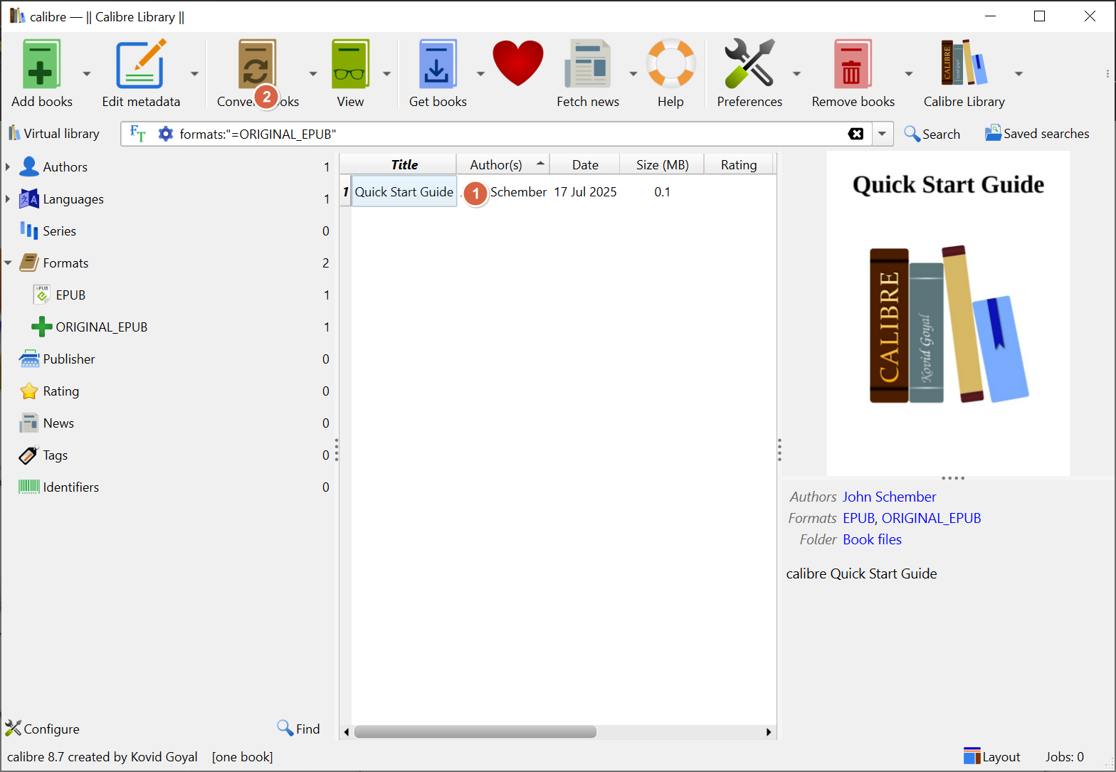 Convert books 메뉴에서 다른 전차책 포맷으로 파일을 변환도 가능합니다.